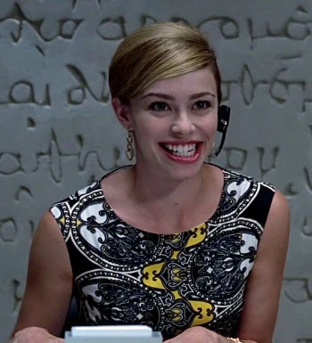 She discovers Steve Newlin's "pet" werewolf Emma Garza in human form and dresses her in a shirt. She lets Steve know what has happened when he returns to the headquarters. ("Gone, Gone, Gone")