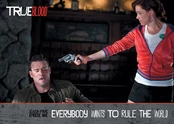 Patrick grabs Arlene and holds her at gunpoint as she arrives at Merlotte's to start her shift. He tells her to call the other employees and tell them that the restaurant is closed that day.