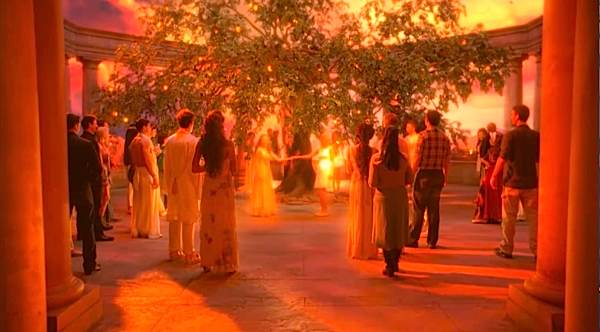 Faerie appeared as a beautiful place in which nature flourishes. Like on any dimensional plane of the Fae, the sun never sets in Faerie. It will therefore always appear to be daytime. This is however, like the Fae's appearance, a mere illusion created by Fae magic. When Queen Mab turned on Sookie, the sky turned dark and nature perished, leading to believe it was her magic which made the plane look appealing to the Halflings.