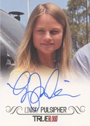 Lindsay Pulsipher, born in Salt Lake City, Utah, is an American actress who plays the role of Crystal Norris on the HBO original series True Blood. Making her debut on the episode "Beautifully Broken" in the series' third season, Lindsay plays the role of a character introduced in a drug bust in Hotshot, Louisiana. Possessing the ability to shapeshift into a Werepanther, Lindsay was a former love interest of Jason Stackhouse. Playing a recurring role through the series' third and fourth seasons, Lindsay was last seen in the Season 4 episode "I'm Alive and on Fire".