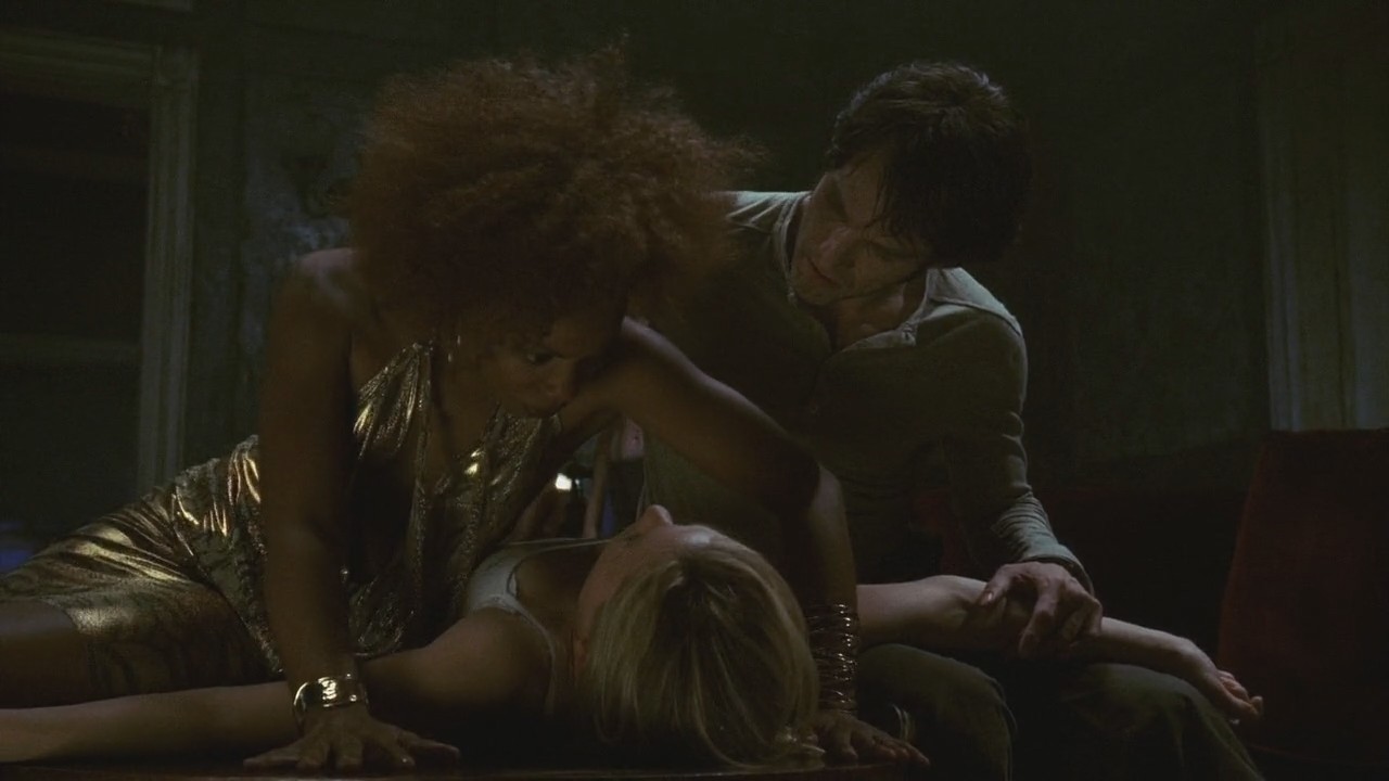| Sookie tries to hold herself together in the wake of another possible tragedy. Tara is amazed by Lettie Mae's turnaround, and considers similar therapy for herself after lashing out at Sookie and Sam. Jason's new squeeze Amy charms the crowd at Merlotte's, but shows a darker side to Jason when their V juice well runs dry. René pops the question to Arlene while Sookie is baby-sitting her kids. Later, at Bill's request on behalf of Eric, Sookie agrees to use her gifts to help Eric, a powerful vampire sheriff, root out a thief at Fangtasia. | ||||