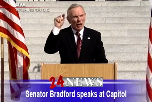 William Bradford is a United States senator on the HBO original series True Blood. A supporter of equal rights for vampires, Senator Bradford spoke at the "Stop the Violence" rally in Washington, D.C. in 2008.